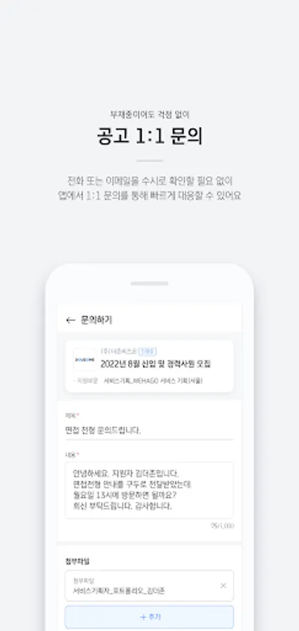 You can make a 1:1 inquiry with a human resources manager in the app.