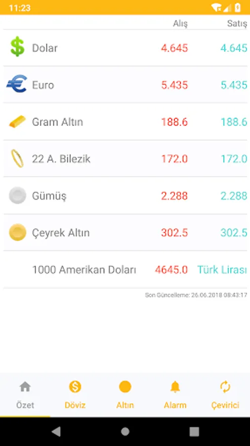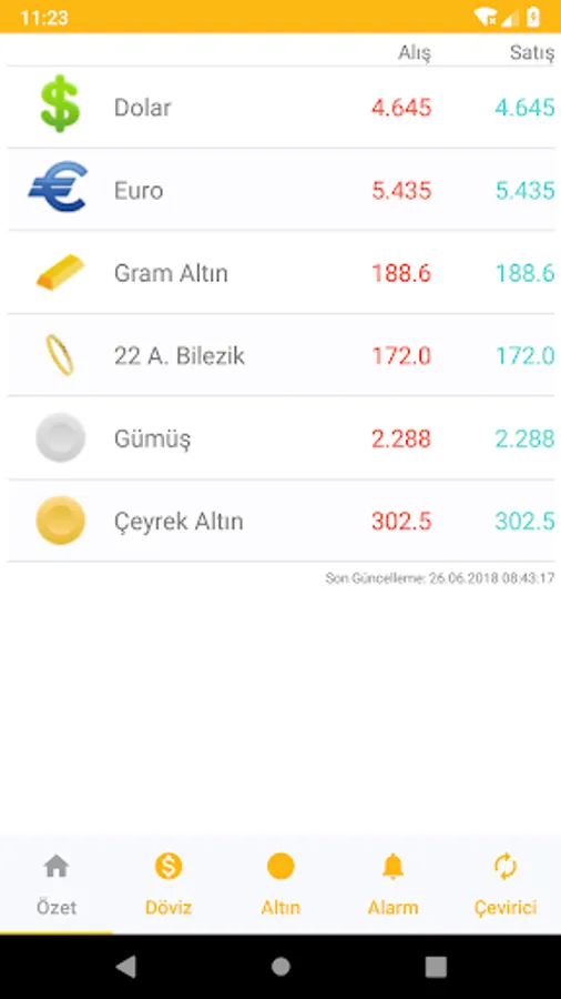 You can follow the Exchange and Gold Rates instantly. You can get an alert when you reach the price you want by adding an alarm to the exchange rates. You can set the alarms when the buy / sell value rises or falls. You can convert the exchange values to each other and pin them to the summary screen. You can learn Dollar, Euro, Sterling, Riyal, Crowns, Quarter Gold, Silver Prices and more.