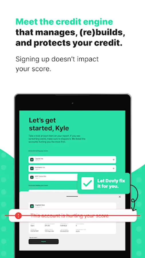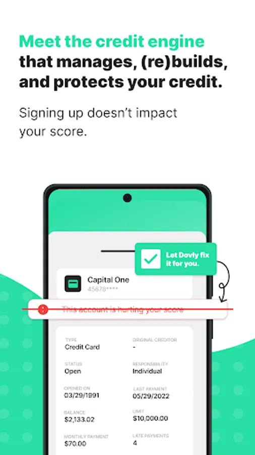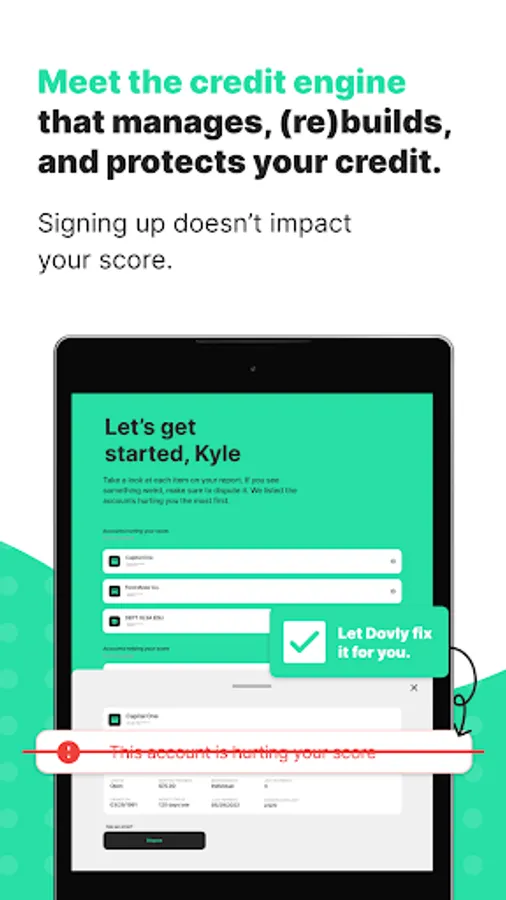Boost your credit score fast with an AI credit engine proven to optimize results. Download the only credit app you'll ever need and let Dovly’s AI credit engine work on your behalf to repair, (re) build, monitor, and protect your credit score – 100% free. No credit card required. Join the members that see a 69 pt credit score increase.*