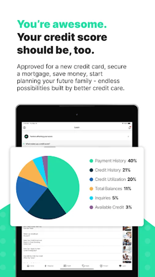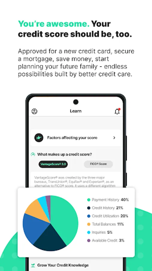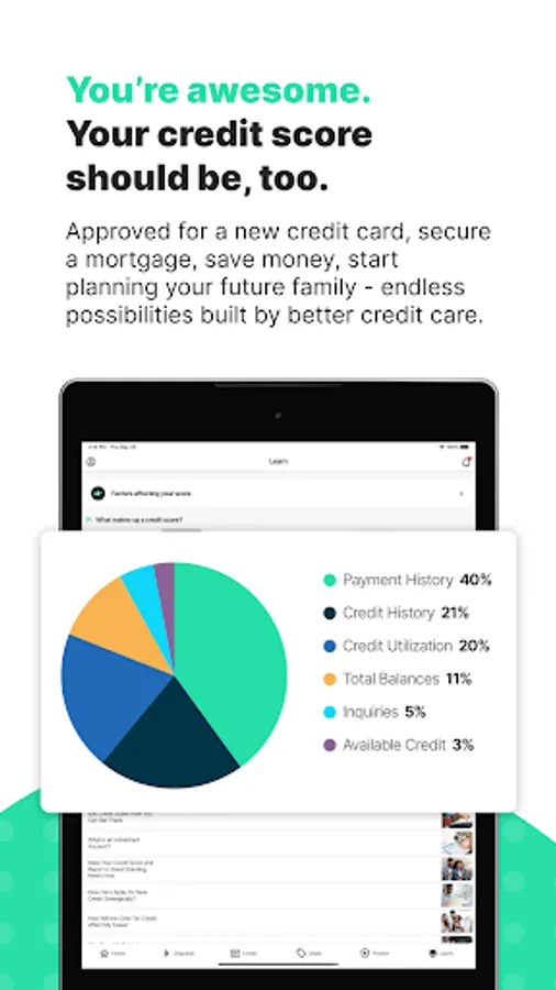 Get approved for a new credit card, secure a mortgage, save money, start planning your future family - endless possibilities with better credit. Enroll in minutes online (no call center agents!) and get a head-turning credit score with credit monitoring, alerts, scores, tips and tricks – for free.