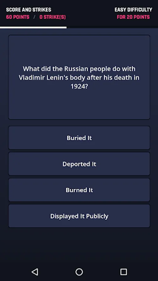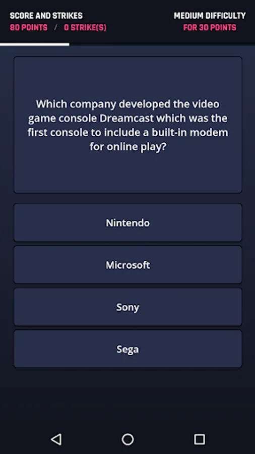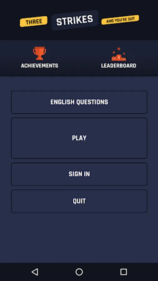 Third Strike Trivia is a single player trivia game with over a thousand trivia questions. Play completely offline or compete for a spot on the leaderboards.