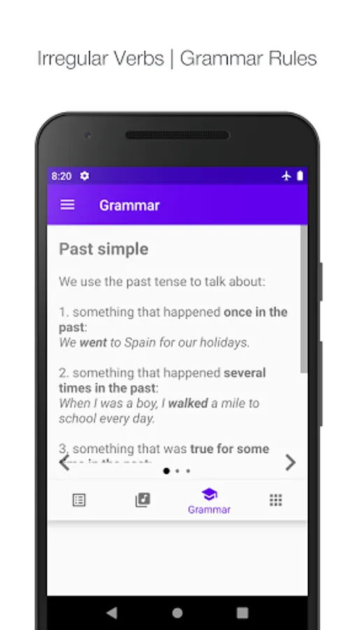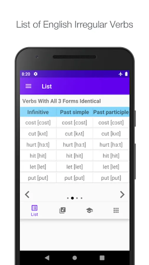 If you are just beginning to learn English, you need to translate unfamiliar words. The application contains all the English irregular verbs with translation.