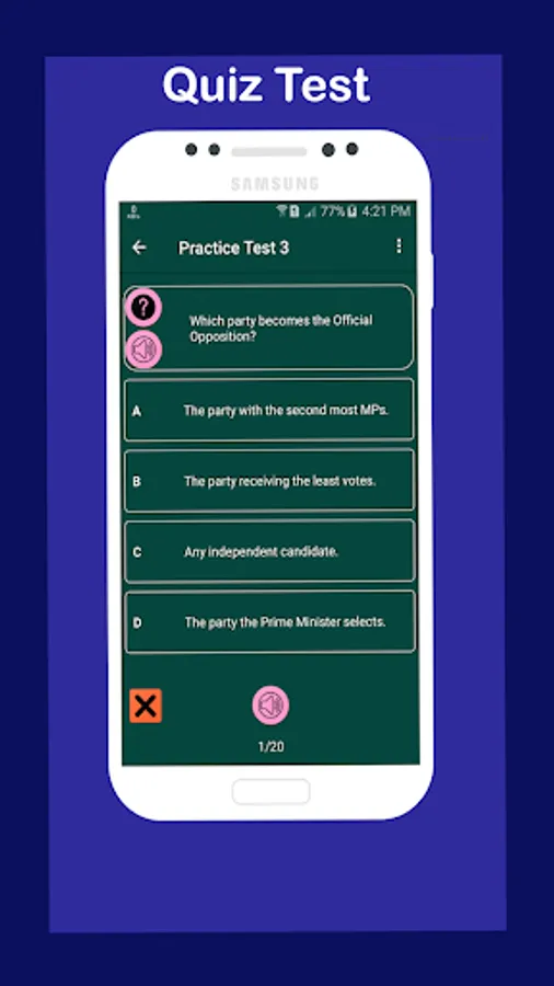 Do you wanna pass Canadian citizenship test? This application provides the best materials for Canadian citizenship test. In this application you will get lots of new questions and answers as well as many practice tests to boost your knowledge.
