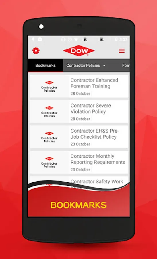 The Dow Texas Operations EH&S App provides the information you need to work safely in Texas Operations. Safety and health information is now at your fingertips while you are on the go. The App will also keep you up to date with current events and important safety messages as well as providing you an easy way to provide feedback to Dow. The App includes these valuable features: