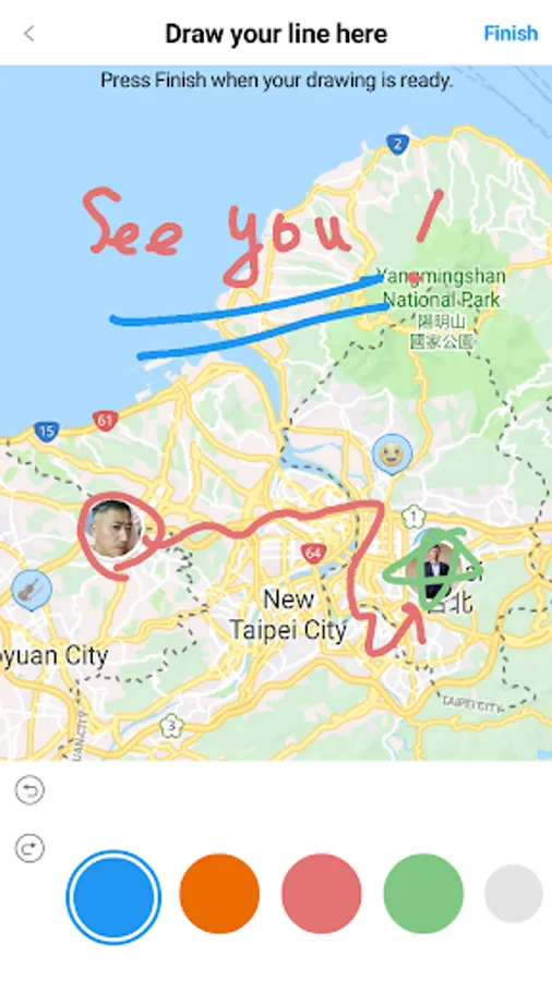 Turn the screen into a handwriting mode while the background is still a map and finish writing you can send it to the group at any time. The communication will be more interesting.