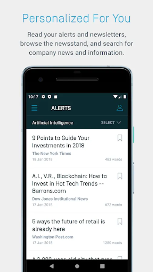 Personalized for you: Easily track highly specific news that is tailored to drive your business decisions while you’re on the go. Scroll through your custom alerts, company newsletters, and relevant news in newsstand whenever, wherever.