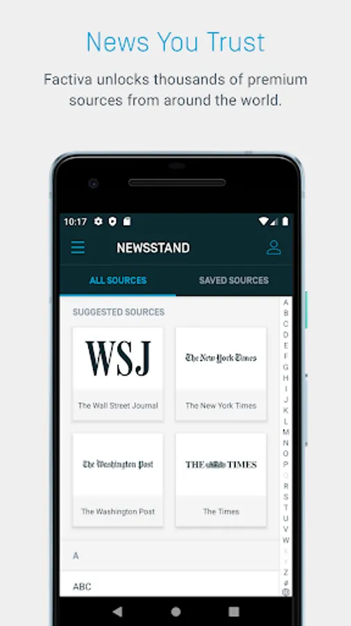 The Factiva Android app, exclusive to Factiva subscribers, provides the information you need, whenever you need it. Stay up to date with access to thousands of premium content sources through custom alerts, newsletters, and newsstand. Search hundreds of thousands of companies to surface relevant news and data on the companies you care about.