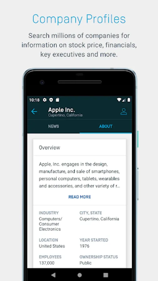 Surface what you need: Search for news and key data on hundreds of thousands of public and private companies directly within the app, including stock price activity, financials, general information and key executives.