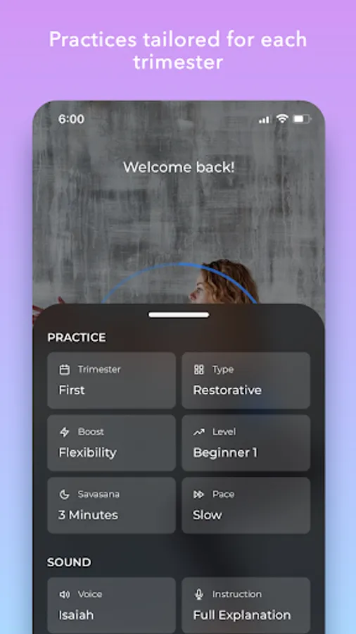 Select a voice you love from 6 different yoga teachers to guide you through your practice.