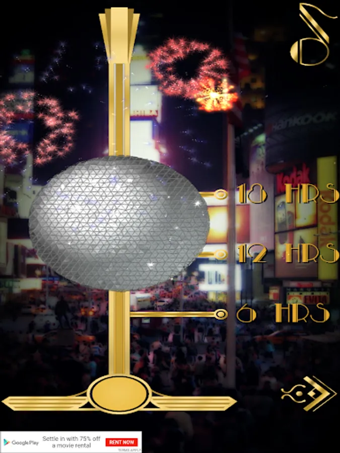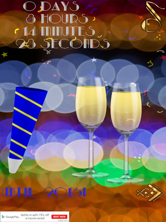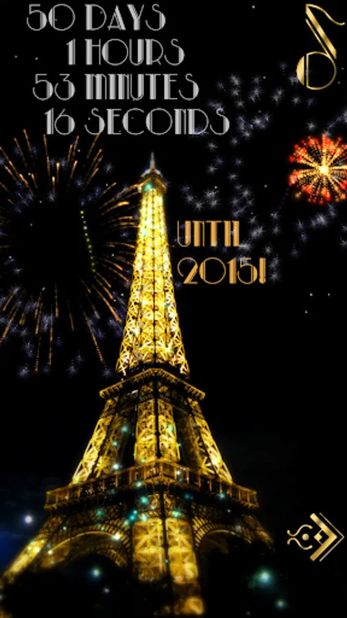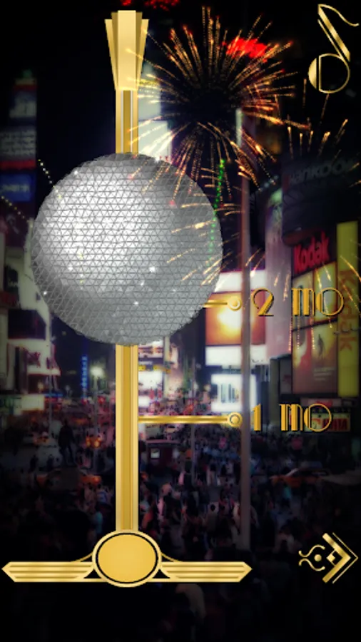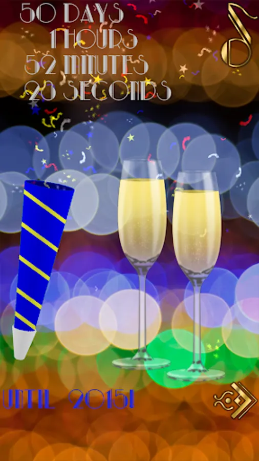 Tap the screen to launch fireworks; touch the champagne flutes, party horn, and music note for New Year's Eve sound effects!