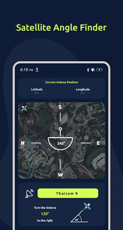 - Satellite Finder and Dish Locator app uses your phone sensor to get your azimuth, so the satellite position calculation depends on the accuracy of your mobile sensor.