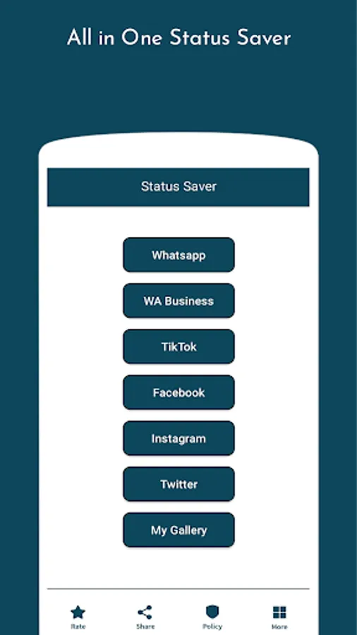 All in One Status Saver is use to save all kind of social media Status. You can easily save All Videos on one click.