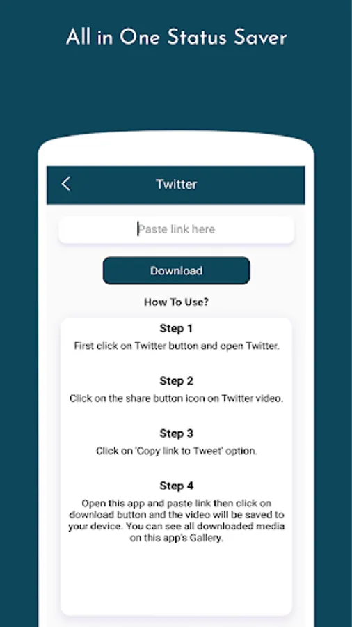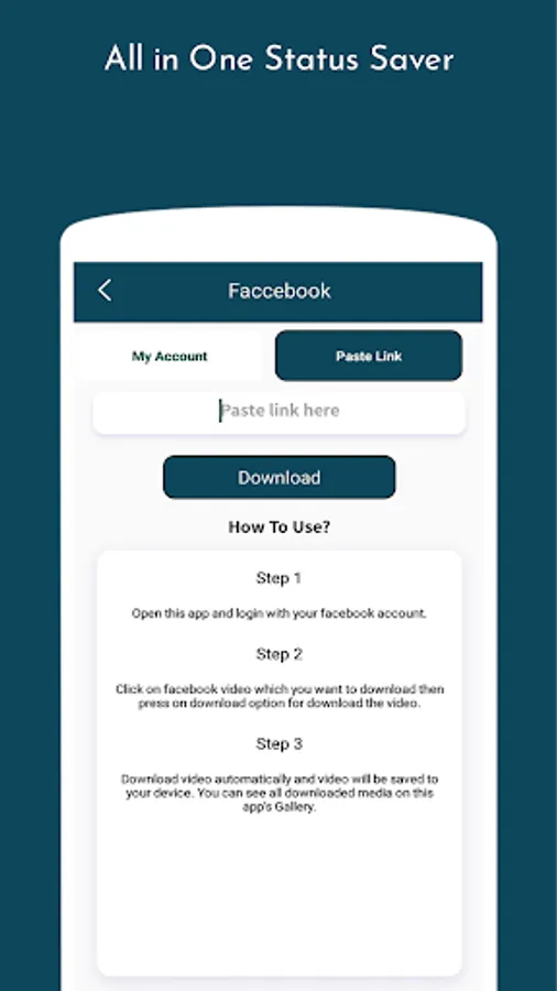 - Open this "All in One status saver" app and click on Paste button