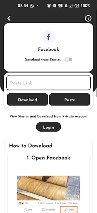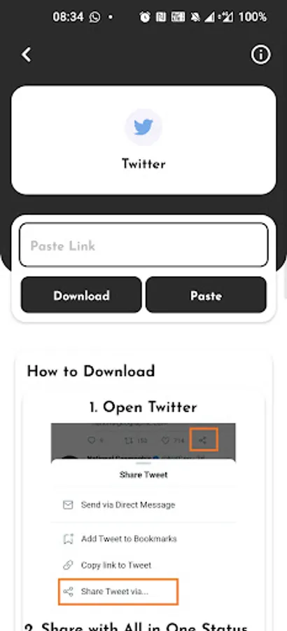 All in one Social Media Downloader app is easy to use. It's a simple 3 step process