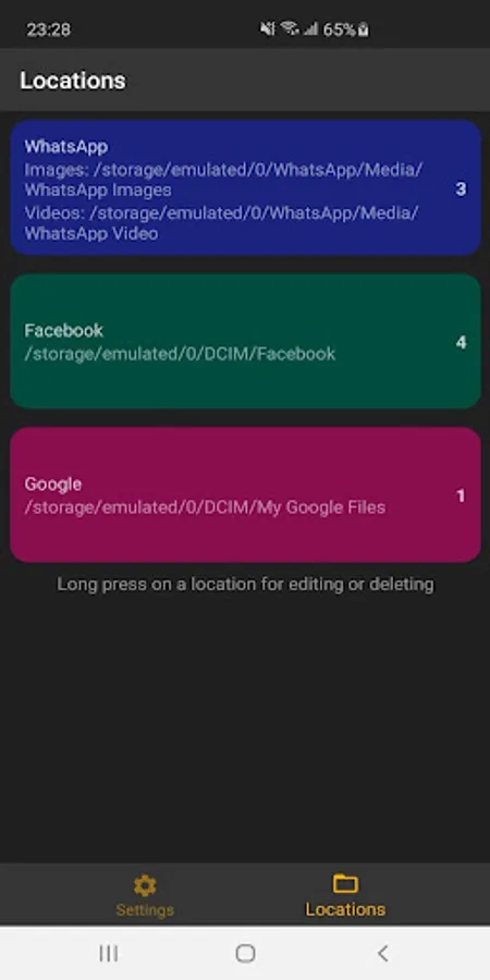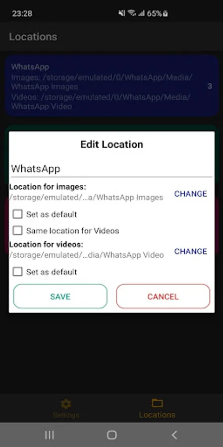 Download image, gif and video files from any application with sharing option to your device. Create media files location to specific application like WhatsApp or Facebook.