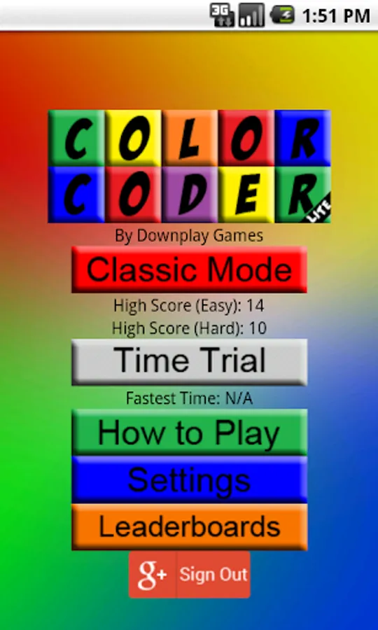 Color Coder features personal high score tracking for both easy and hard modes as well as Google Play Game Services global leaderboards.