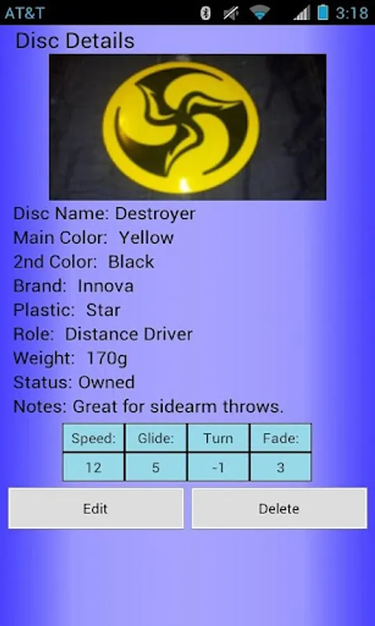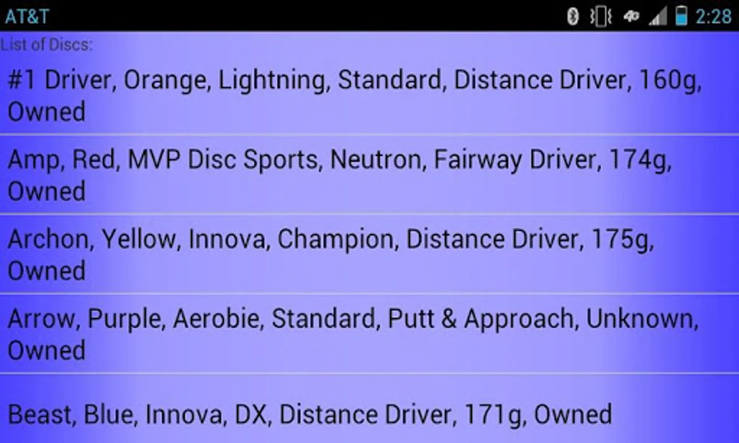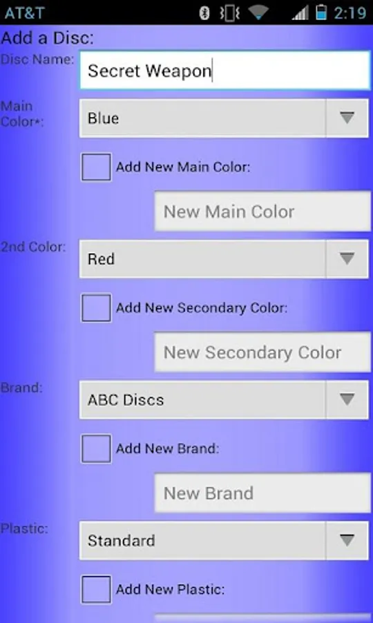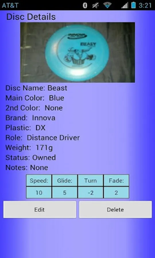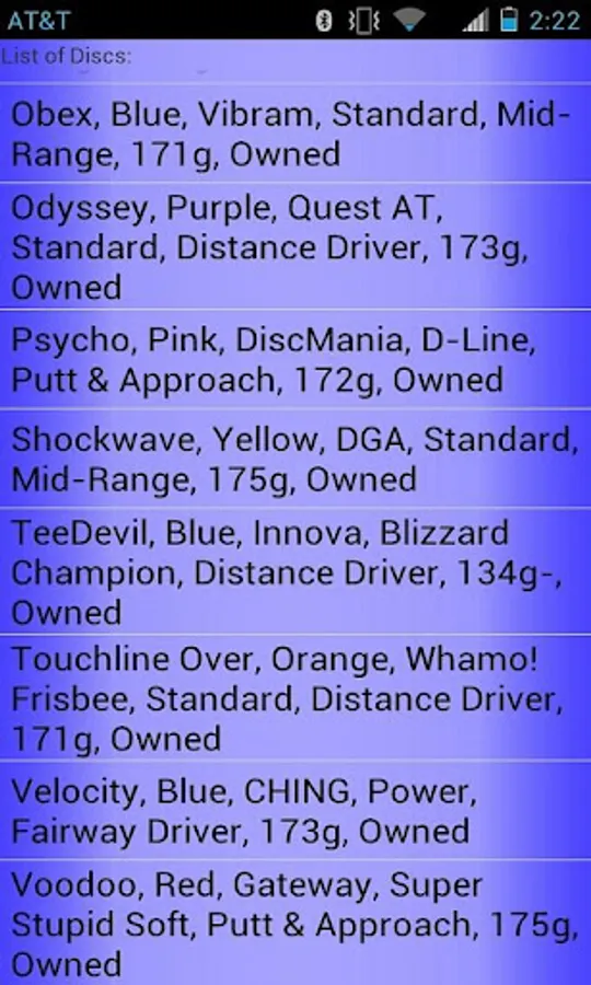*The number of discs you can store in the Disc Golf Cataloger is limited by your device's available memory.