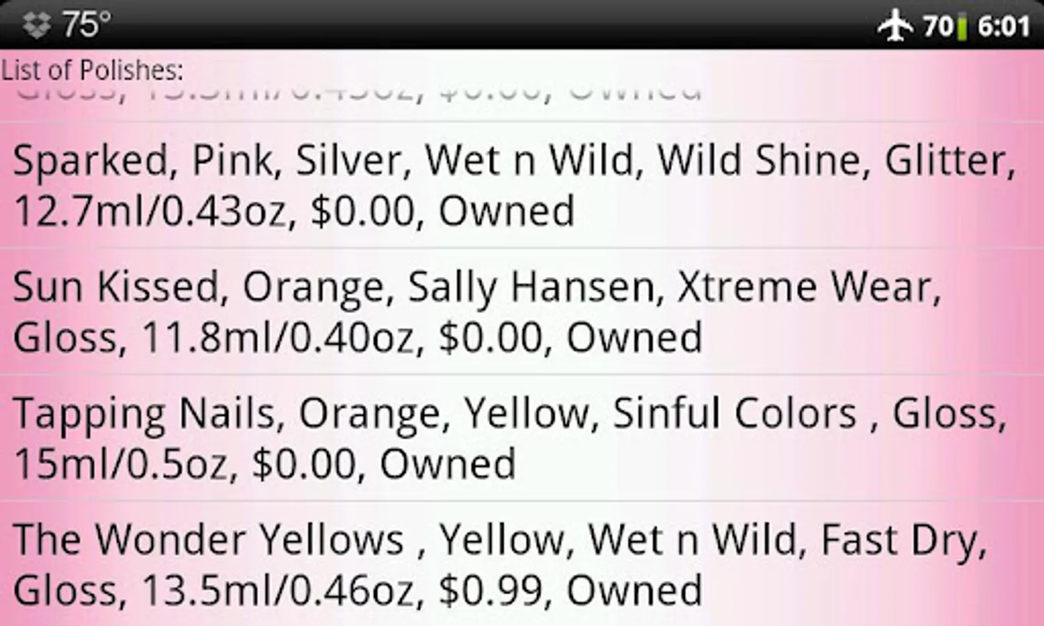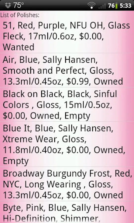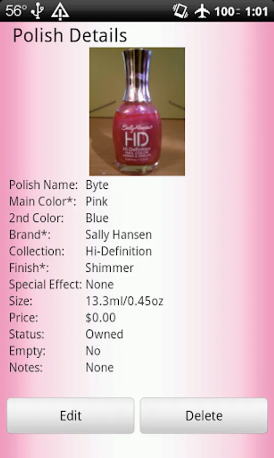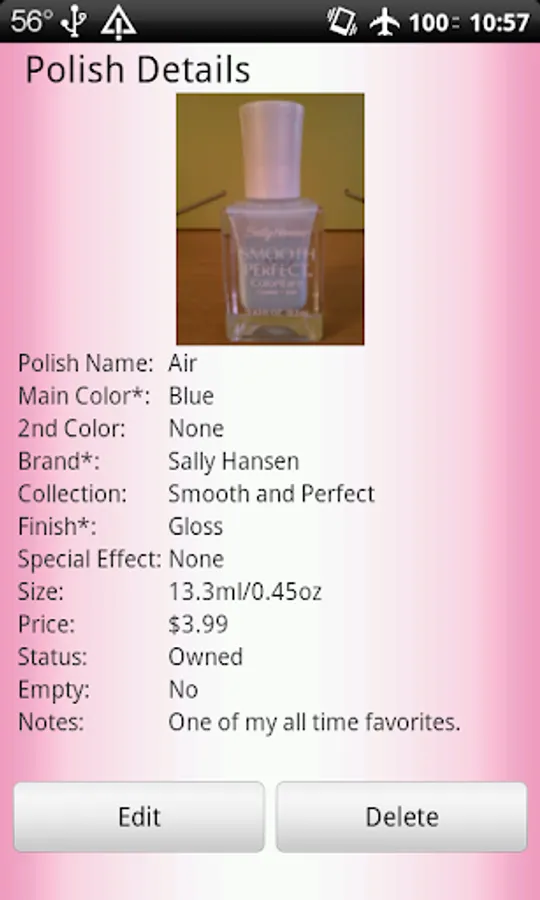 *The number of polish you can store in the Nail Polish Cataloger is limited by your device's available memory.