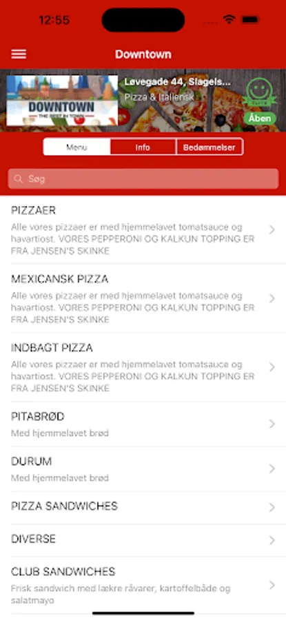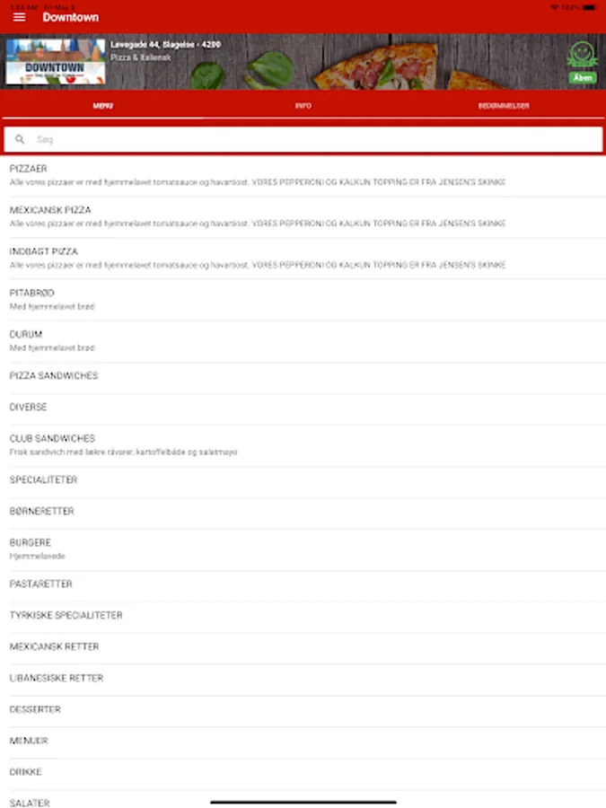 Bestil pizza, burger, pasta, m.m. med få tryk, nemt og hurtigt!