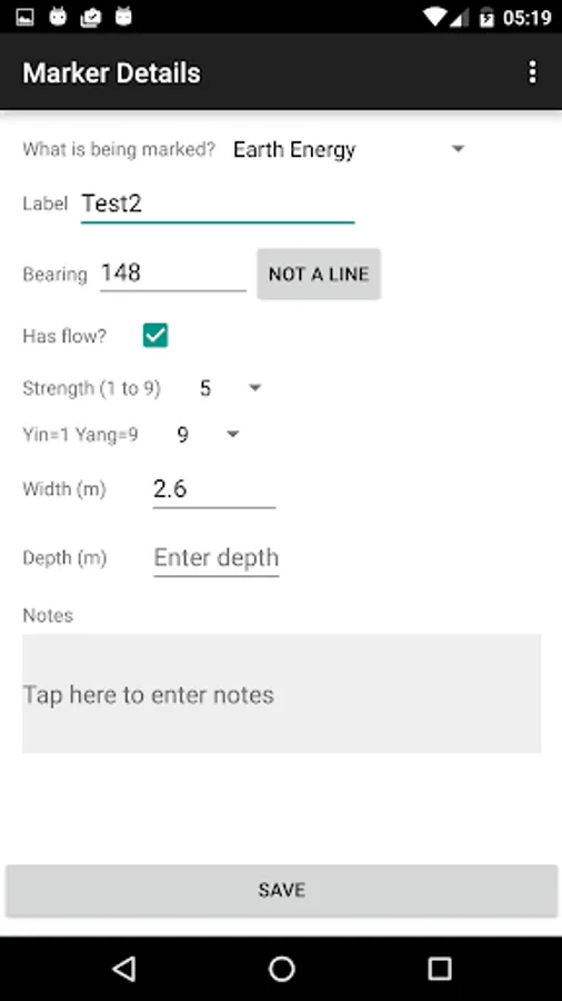 Dowsing Mapper is designed for ease of use and high accuracy while maintaining efficient battery use. When you get a dowsing reaction, simply add a marker to show what you have dowsed. For earth energy features, markers indicate the bearing, strength, width and the yin/yang quality. For physical features, markers indicate bearing and direction of flow, if any.