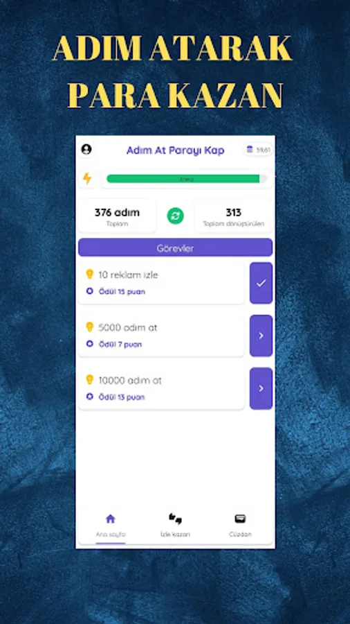 It is an application where you can generate income that we have prepared for you with Take Steps and Get Money. It is a platform where you can earn money by taking steps, watching ads and doing tasks.