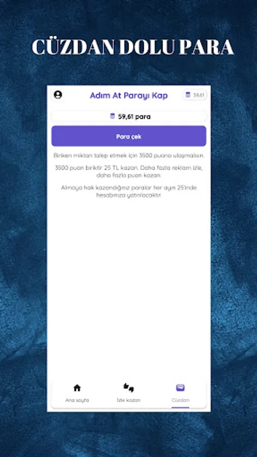 When you make 3500 points, you will be able to request a payment. You can withdraw to any bank you want with IBAN or Papara. Your payment will be deposited on the 29th of the month. Of course, it is not difficult to earn points, of course, you can earn points very easily. Because taking a step, watching ads, doing a task will earn you points.