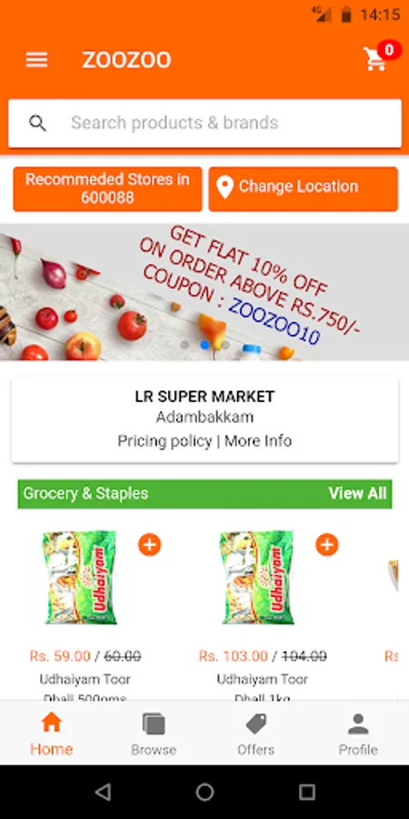 ZOOZOO.in is the delivery app for you, that don’t want spend hours in giant lines at super markets, shops and stores. Shop the products like grocery and staples, fresh fruits and vegetables, Meat and sea food and any other grocery list you need from the nearby stores you love and its delivered at doorstep.