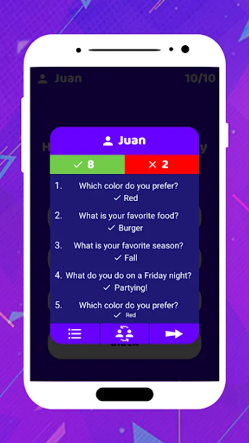 Finally, the game will show the result and you will know how well he or she knows you.