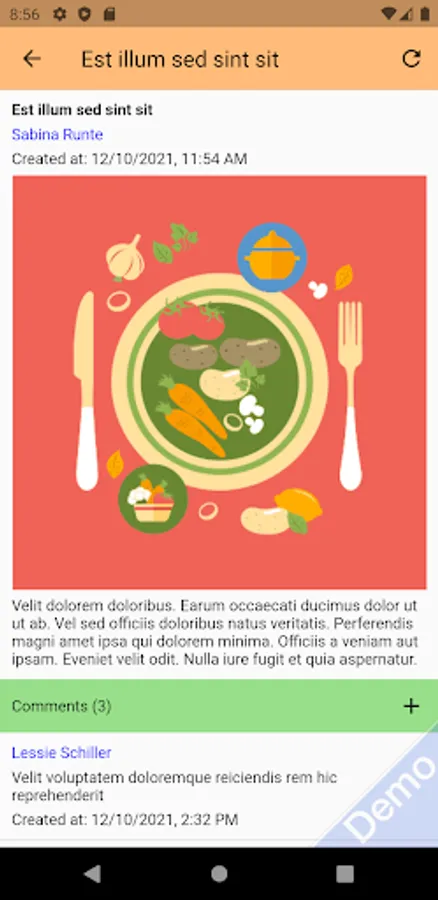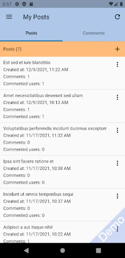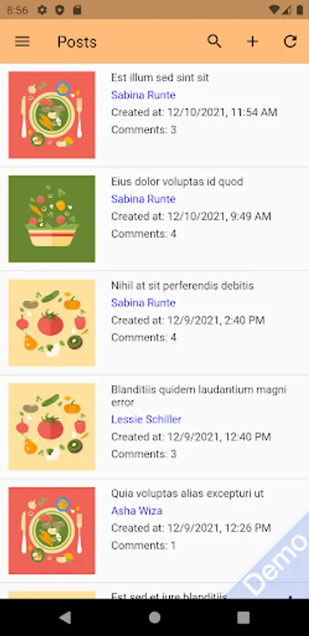 Demo App: A mobile app enables users holding conversations in the form of posted messages.