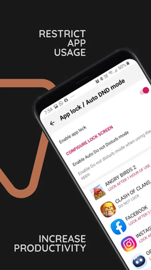 - Lock apps after 1 hour of usage