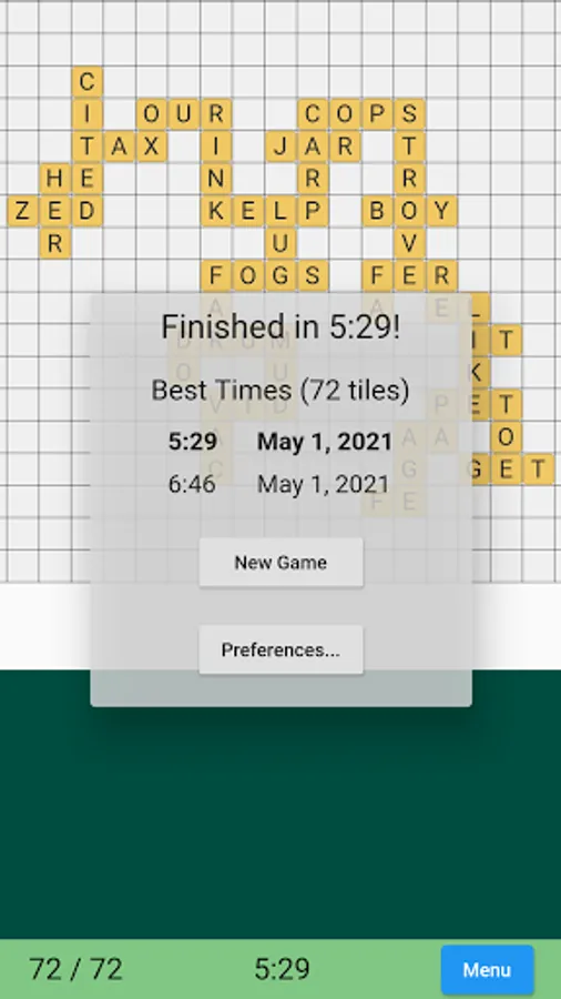 A word game where you place letters to create intersecting words as quickly as possible. Try to beat your best times, while practicing vocabulary and anagramming. Completely free and open source with no ads.