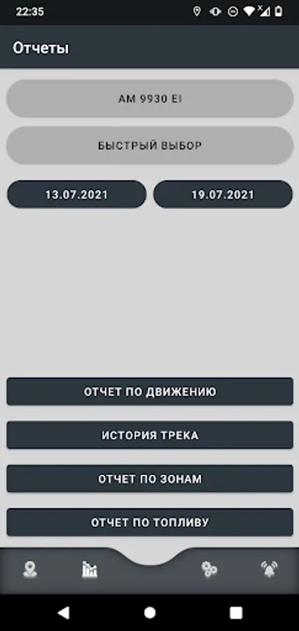 - counters (distance traveled, fuel consumption (information is displayed if the fuel level sensor is connected), engine running time, stop time