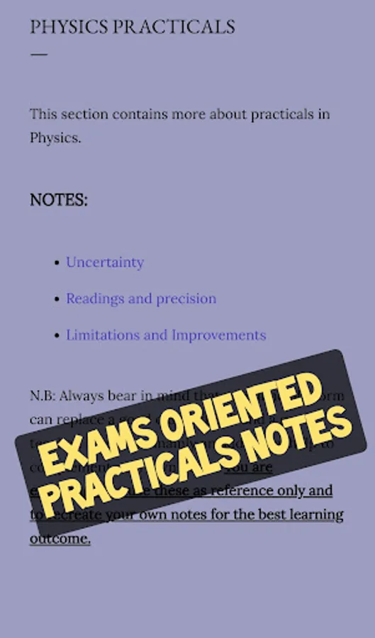 The app features both materials for theory and practicals so that the whole syllabus is covered