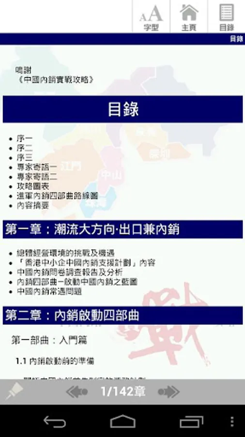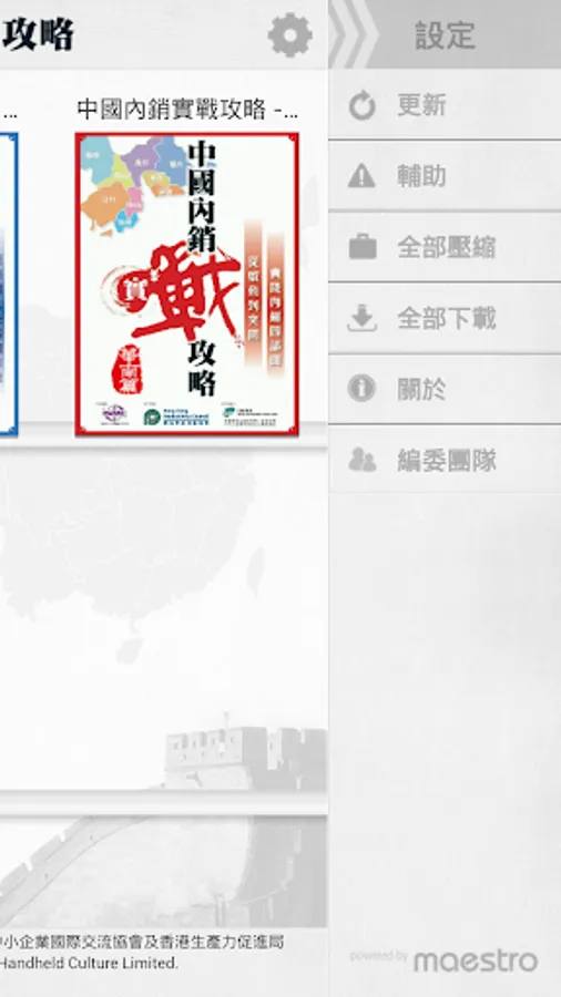 由香港中小企業國際交流協會, 香港生產力促進局所編寫的《中國內銷實戰攻略》, 備受六大行業商會歡迎, 能深入淺出地講解進入內地市場的步驟, 細分六大行業突圍的關鍵要素。此外, 本《攻略》的特色是能助中小企『四步成銷』, 以內銷四部曲為藍圖, 分入門、科技、產品及市場四部曲, 涵蓋由啟動內銷到致勝突圍整個內銷過程, 循序漸進, 清晰全面, 還附以『內銷金句』, 精闢獨到, 深刻易明。最後, 更附有六大行業的先行者, 二十一間香港企業案例經驗分享, 道盡開拓中國內市場的心路歷程, 為新進入者提供極富參考價值的內銷心得。
