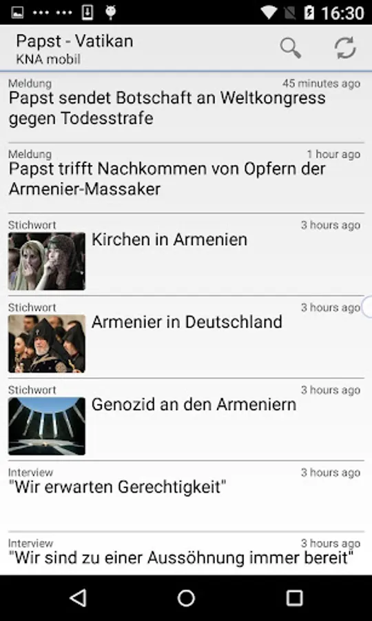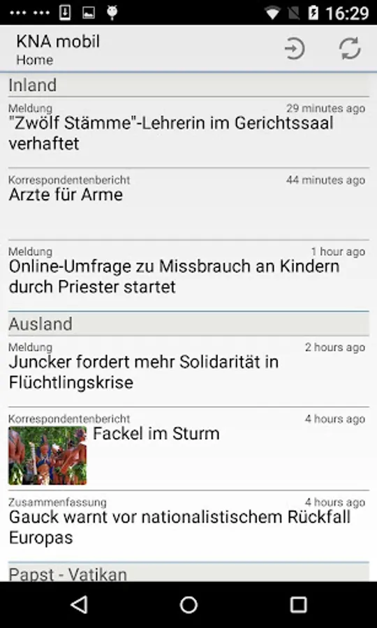 The app provides customers who purchase the KNA-based service, current texts and pictures in the categories of domestic, foreign, Vatican, Culture and Human Interest. In addition to the current CBA messages and background reports and daily preview themes are received.