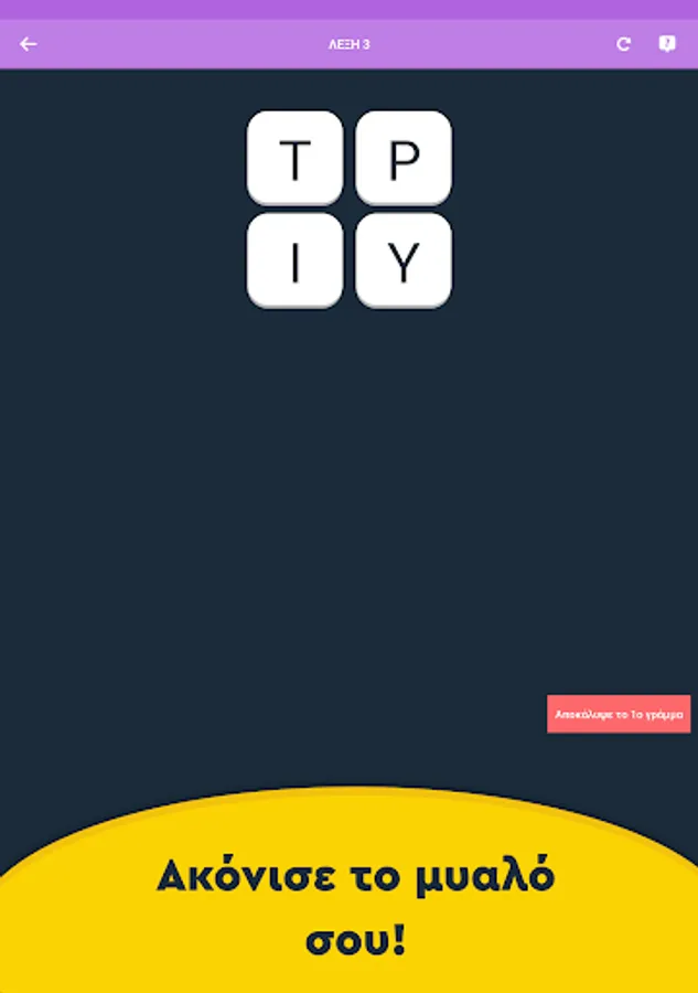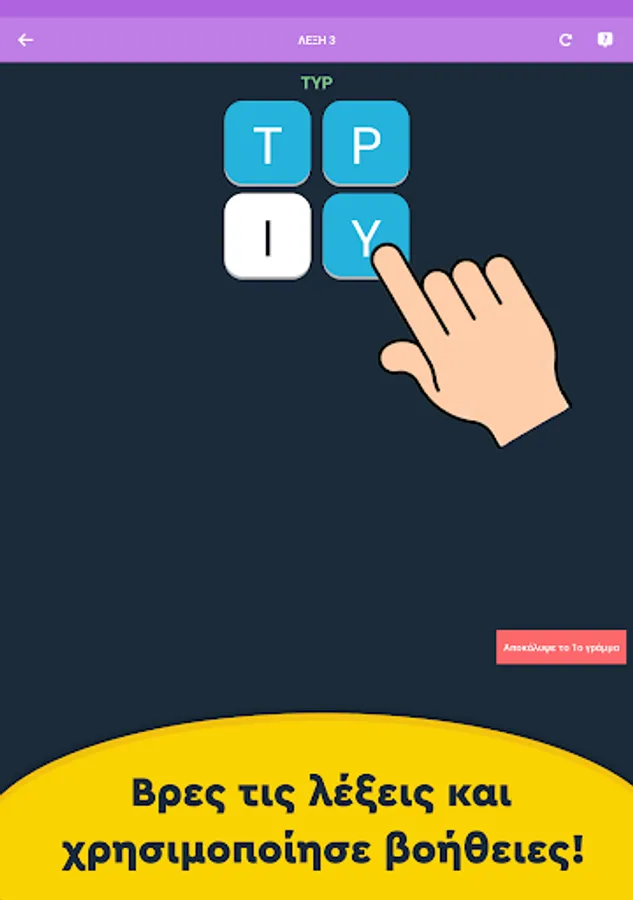 Are you stuck? Press the orange button and display the first letter of the word you are looking for!