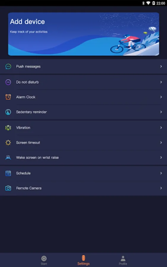 • Wake screen on wrist raise: When active, the display of the Smart Watch turns on when you raise your arm. You can select a time period for this function. Outside this period, the display will not turn on when you raise your arm.