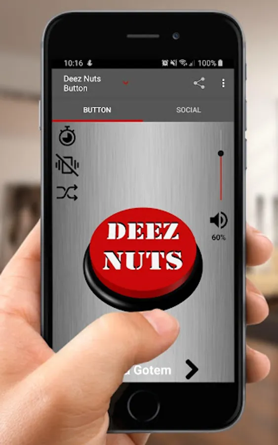 Experience the legendary Deez Nuts meme like never before with our Deez Nuts Sounds app! Simply tap the button and wait for the iconic meme sound to play. Plus, with our timer option, you can even customize when the sound effect kicks in, adding a hilarious twist to your pranks and jokes.