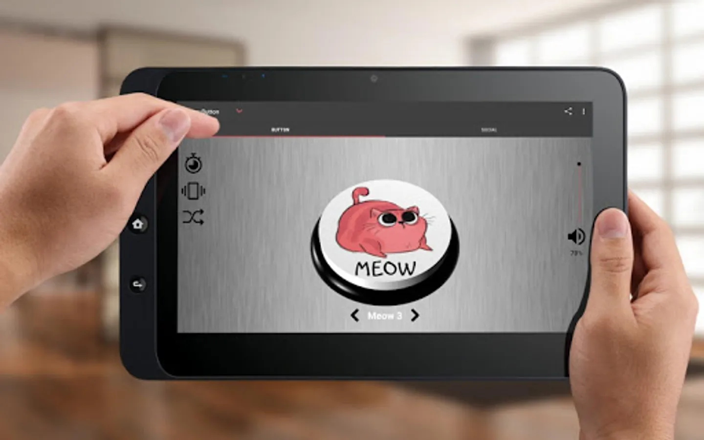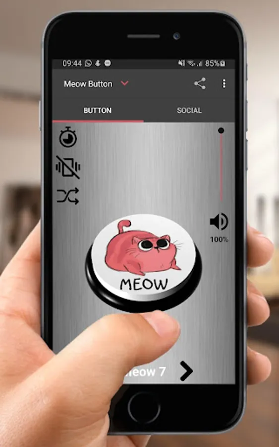In Cat Kitten Meow Button are seven sound effects that you can switch by pressing right or left arrow.