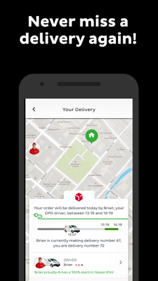 30-minute delivery alerts - we don’t want you to wait in all day so with all your DPD deliveries, we’ll let you know in advance when to expect delivery and when we are just 30 minutes away.