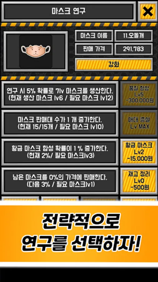 마스크 키우기는 마스크 공장을 운영하는 클리커 시뮬레이션 게임입니다.