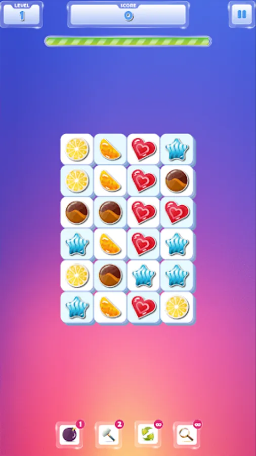 Connect 2 matching candy cards using three or fewer straight lines to clear candy cards, clear all match pairs to go next level.