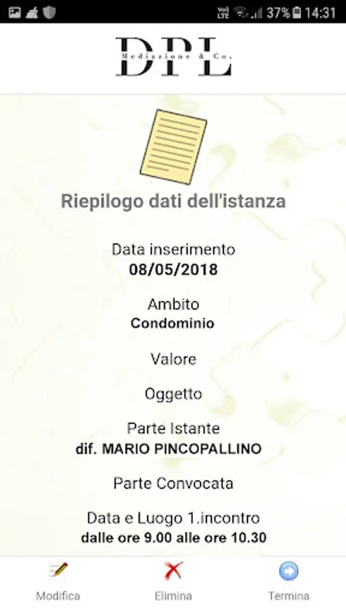 The application lets you enter and track civil mediation requests will be handled by the study DPL Mediation & Co.