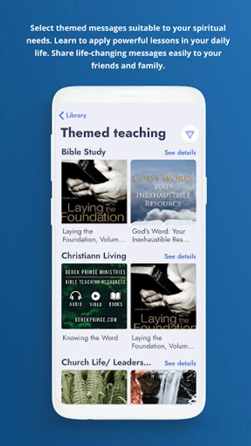The Derek Prince Bible Teaching App brings you daily devotional content from the internationally recognised author and Bible teacher, Derek Prince. Select themed messages suitable to your spiritual needs. Learn to apply powerful lessons in your daily life. Share life-changing messages easily to your friends and family.
