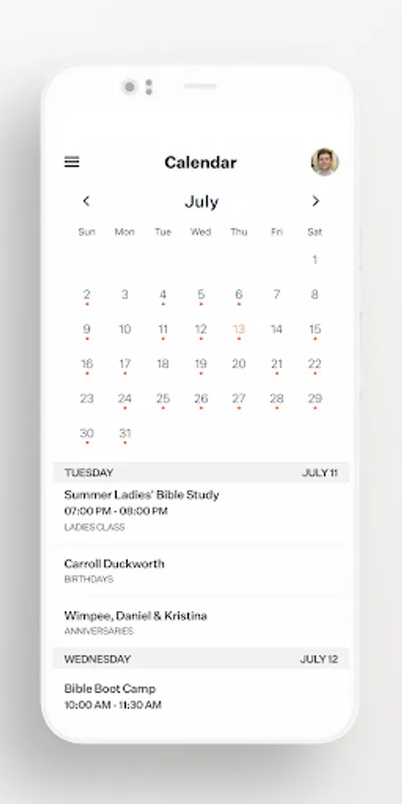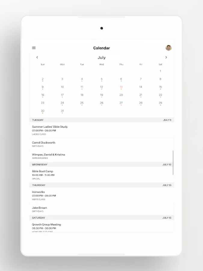 In addition, access all of Congregate's other member modules plus any user-added member pages right inside the app: