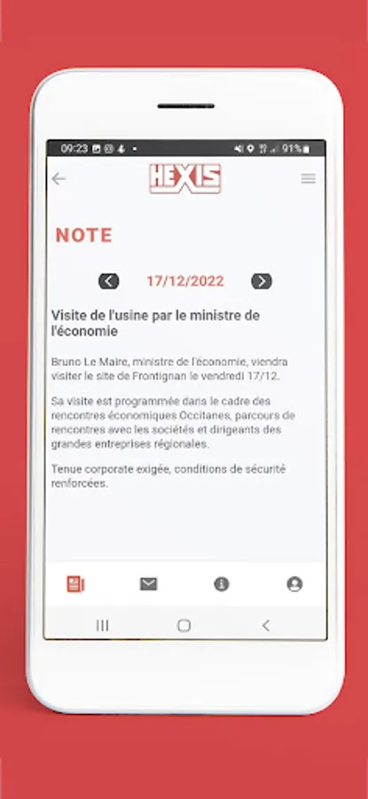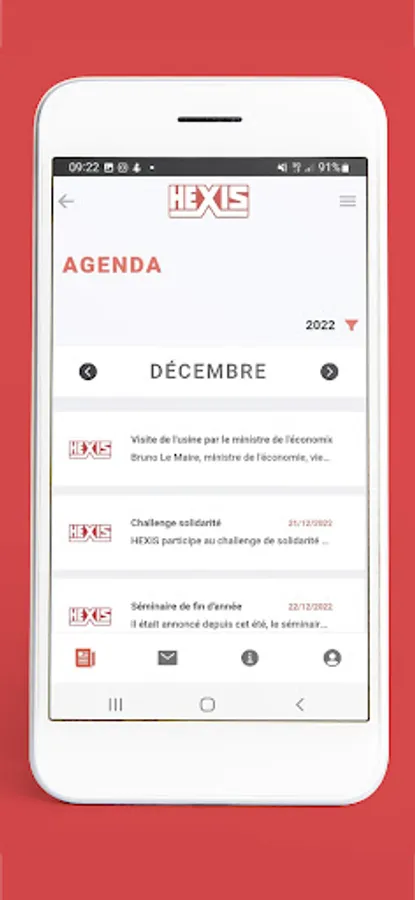 Visitors, suppliers, customers, employees and managers of the HEXIS Group, this application is for you! Discover practical HR information (framework agreements, agreements, holidays, etc.), news and life in the HEXIS Group on all of its sites, take note of the events on the agenda, discover the gallery and its photo albums and submit your best ideas in the box. Subscribe to the push notification system to receive the most important alerts and news.