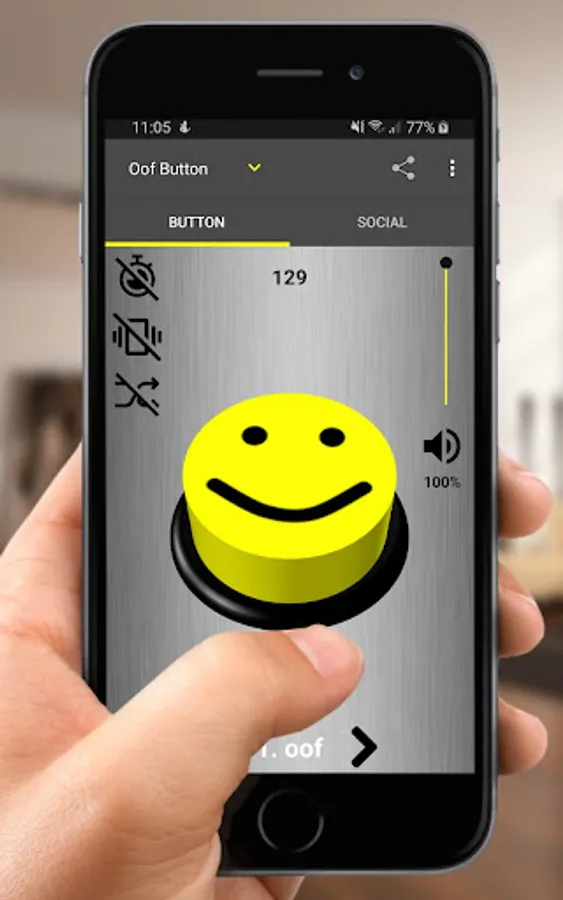 In Oof Sound Button are thirteen sound effects that you can switch by pressing the arrow right or left. All sound effects are from Oof sound meme that are customized.