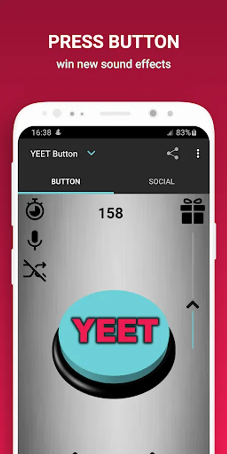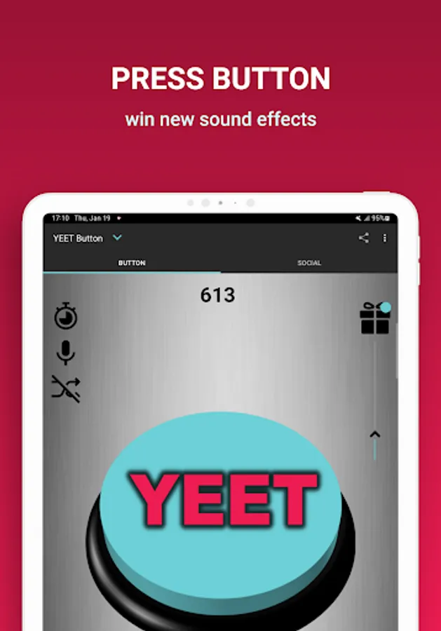 In YEET Button are many sound effects that you can switch by pressing the arrow right or left.