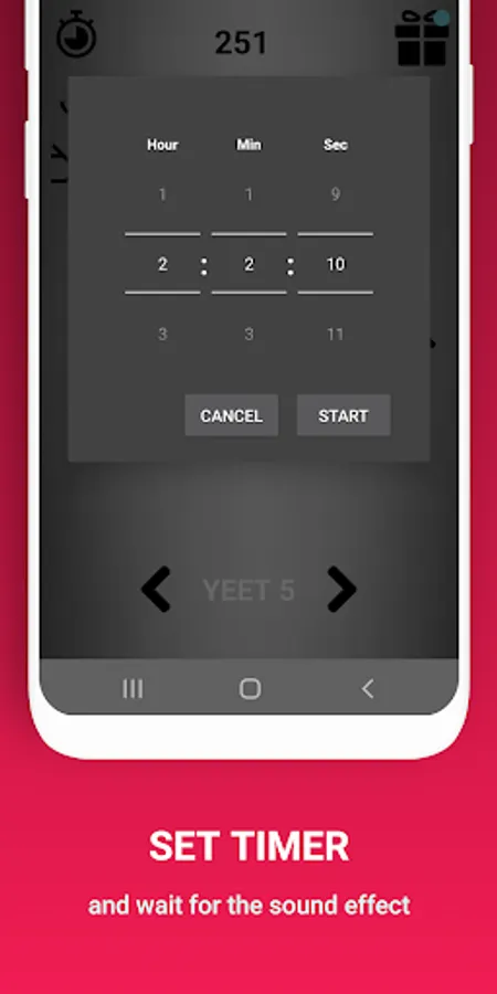 With timer option, you can set after how many seconds you want to play your selected sound effect.