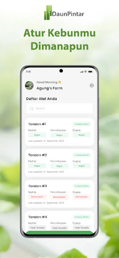 Aplikasi ini hanya berfungsi untuk alat-alat Precision Farming dari Daun Pintar. Alat yang didukung: